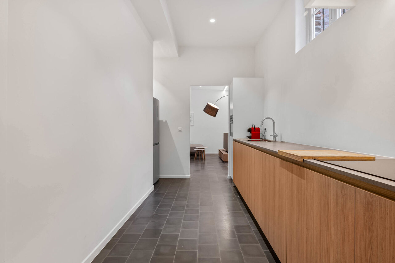 Dit uniek appartement is gelegen in residentie “De Gaepaert” in een historisch pand pal in centrum van Aalst en bevindt zich op het gelijkvloers. Indeling: een lichtrijke leefruimte, een volledig geïnstalleerde keuken met aansluitend een aparte bergruimte waar oa aansluiting is voor een wasmachine. Verder is er een apart toilet, de slaapkamer en een badkamer met inloopdouche en wastafel. Tot slot is er een gemeenschappelijke fietsenberging + afvalruimte aanwezig. TROEVEN: zeer mooi afgewerkt appartement, heel veel natuurlijk licht dankzij de vele glaspartijen, hoge afwerkingsgraad, energiezuinig, unieke locatie met zicht op de binnentuin, gemeenschappelijke fietsenberging aanwezig, onmiddellijk beschikbaar. Meer informatie of bezoek? Contacteer Charlotte van IMMO TROEF: 052 52 52 00 - info@immotroef.be