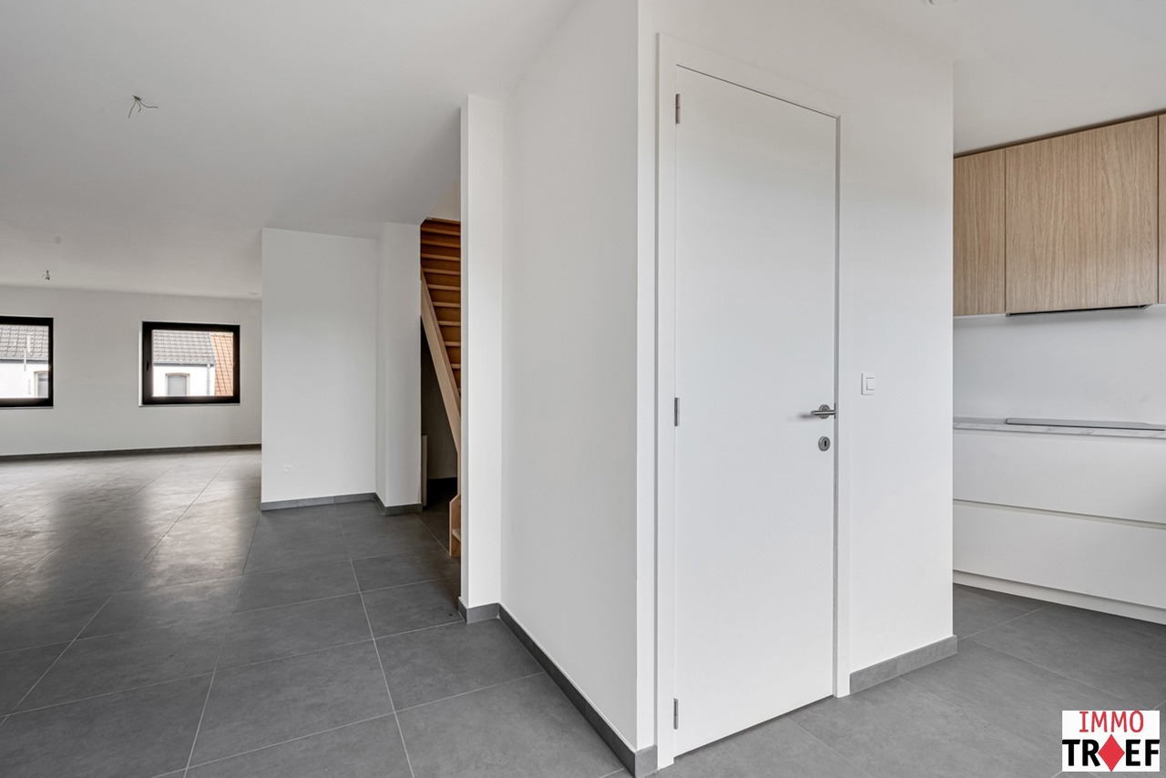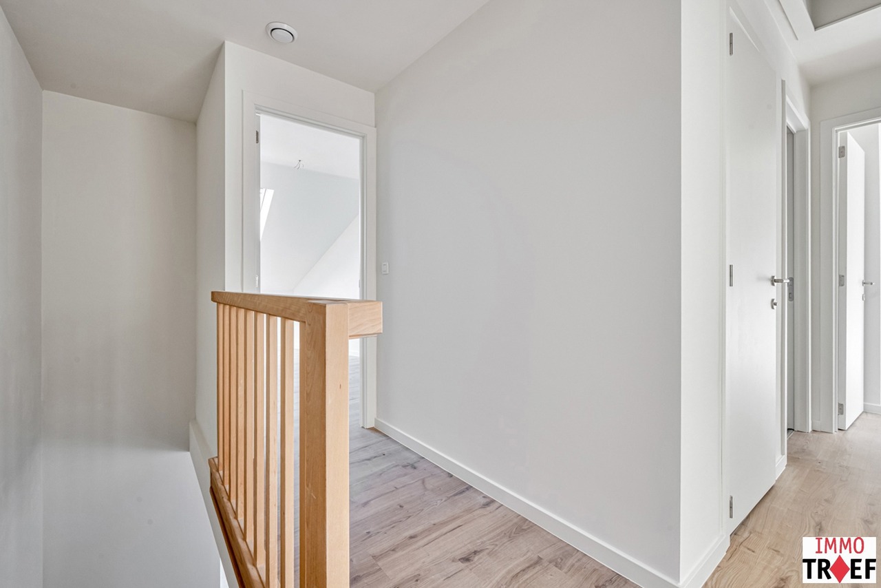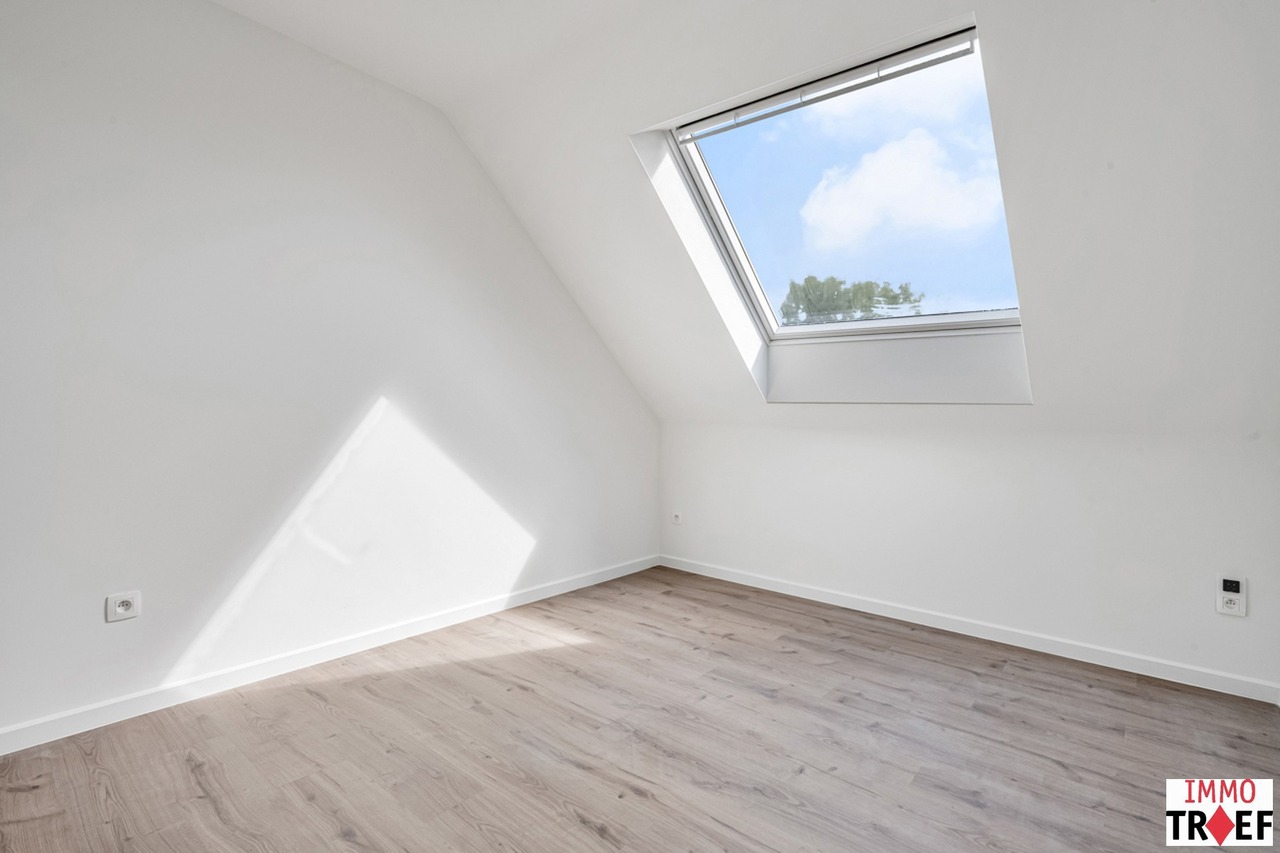 Dit energiezuinig nieuwbouwappartement bevindt zich op de eerste en tweede verdieping en heeft volgende indeling: een inkomhal met gastentoilet, een ruime en lichtrijke leefruimte met aansluitend een volledig geïnstalleerde keuken, een praktische opbergruimte en toegang tot het terras. Op de tweede verdieping is er een nachthal, een apart toilet, een badkamer met ligbad, inloopdouche, wastafel en oa aansluiting voor wasmachine. Tot slot zijn er 3 ruime slaapkamers aanwezig. Bij dit duplex-appartement is een staanplaats inbegrepen in de huurprijs. TROEVEN: centraal gelegen vlakbij scholen, winkels, openbaar vervoer, mooi lichtrijk appartement, eerste bewoning, EPC A, onmiddellijk beschikbaar. Meer info, vragen of een bezoek? Contacteer Charlotte van IMMO TROEF: 052 52 52 00 – info@immotroef.be