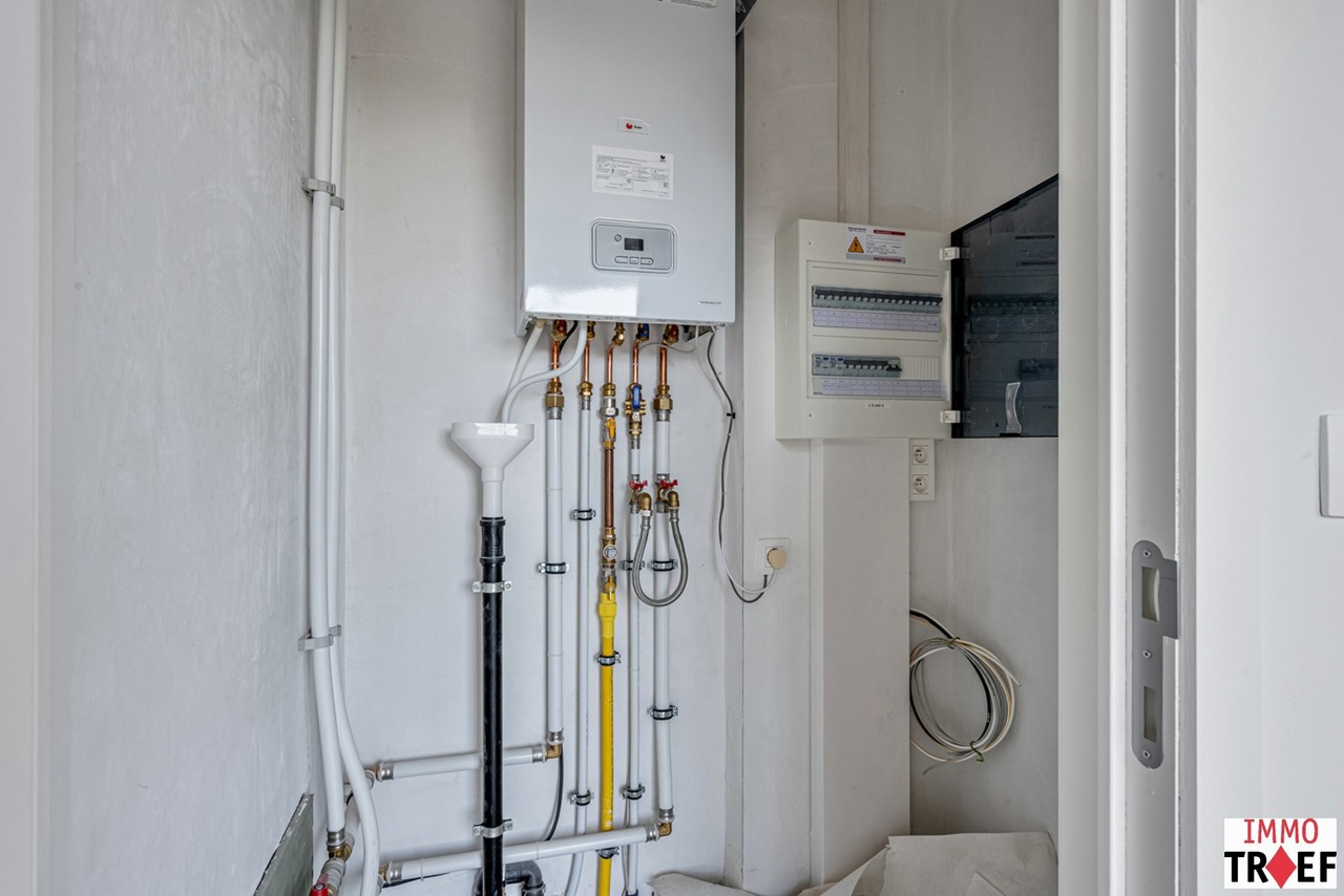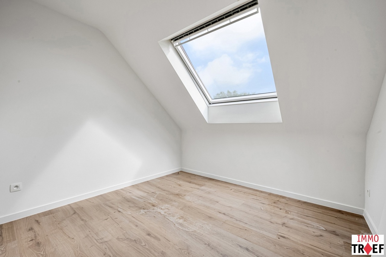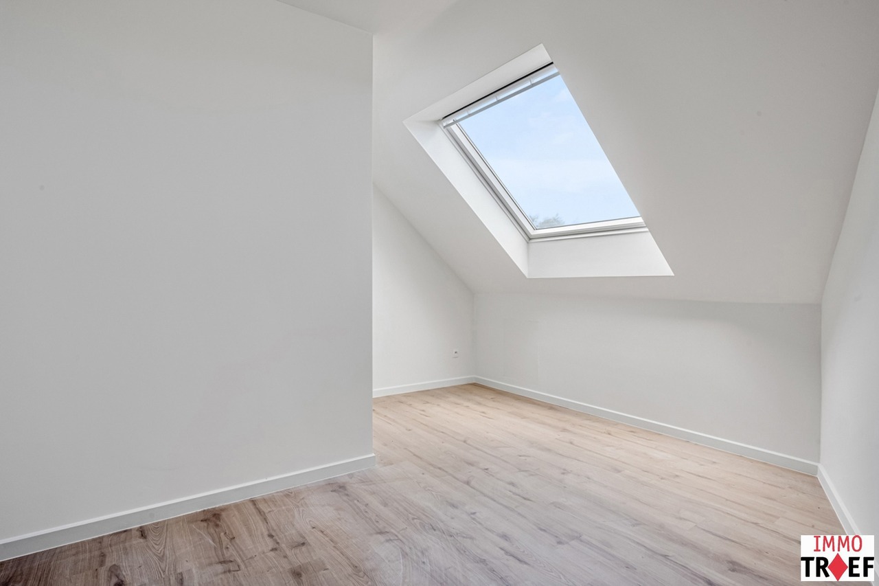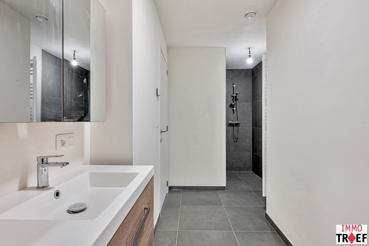 Dit energiezuinig nieuwbouwappartement bevindt zich op de eerste en tweede verdieping en heeft volgende indeling: een inkomhal met gastentoilet, een ruime en lichtrijke leefruimte met aansluitend een volledig geïnstalleerde keuken, een praktische opbergruimte en toegang tot het terras. Op de tweede verdieping is er een nachthal, een apart toilet, een badkamer met ligbad, inloopdouche, wastafel en oa aansluiting voor wasmachine. Tot slot zijn er 3 ruime slaapkamers aanwezig. Bij dit duplex-appartement is een staanplaats inbegrepen in de huurprijs. TROEVEN: centraal gelegen vlakbij scholen, winkels, openbaar vervoer, mooi lichtrijk appartement, eerste bewoning, EPC A, onmiddellijk beschikbaar. Meer info, vragen of een bezoek? Contacteer Charlotte van IMMO TROEF: 052 52 52 00 – info@immotroef.be