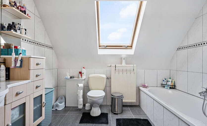 Dit gezellig duplex-appartement is gelegen in Denderbelle, vlakbij openbaar vervoer, scholen en winkels. Indeling: inkomhal, een gastentoilet, een vestiaire, een lichtrijke leefruimte, een volledig geïnstalleerde keuken, 2 praktische bergingen met oa aansluiting voor wasmachine & droogkast. Verder is er een trappenhal met op de tweede verdieping 2 slaapkamers en tot slot een badkamer met ligbad, douche, wastafel en een tweede toilet. Tot slot is er buiten ook een bergruimte voorzien, ideaal voor fiets/vuilnis. TROEVEN: gezellig & ruim appartement, centraal gelegen, lichtrijke ruimtes, geen gemeenschappelijke kosten, zeer energiezuinig (EPC B) aparte inkomhal. Meer informatie of bezoek? Contacteer Charlotte van IMMO TROEF: 052 52 52 00 of info@immotroef.be