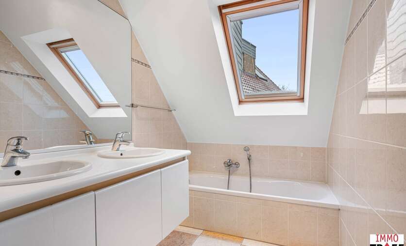 Dit aangenaam en ruim duplex appartement bevindt zich in hartje Lebbeke op wandelafstand van winkels, scholen en openbaar vervoer en is gelegen op de 3de verdieping van residentie "De Lente". Indeling: een ruime inkomhal, een slaapkamer met eigen terras, een toilet, een badkamer met dubbele wastafel en ligbad, een geïnstalleerde keuken, een gezellige leefruimte met toegang tot een tweede terras en een praktische berging met oa aansluiting wasmachine/droogkast. Op de verdieping is er een nachthal en zijn er 2 ruime slaapkamers. Bij dit appartement is een garagebox inbegrepen. Huurprijs € 850 per maand + € 45 gemeenschappelijke kosten (verbruik water wordt afgerekend via syndicus). TROEVEN: ruim en gezellig appartement, rustig en in centrum gelegen, praktische bergruimte, twee terrassen, garage inbegrepen. Info/bezoek? Contacteer gerust Charlotte van IMMO TROEF: 052 52 52 00 of info@immotroef.be.