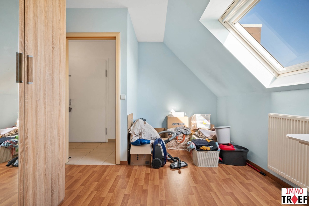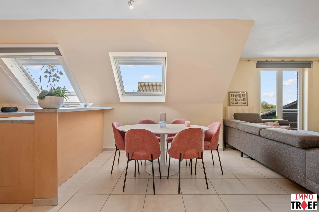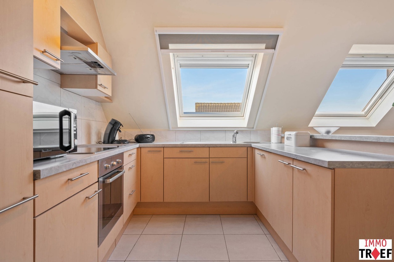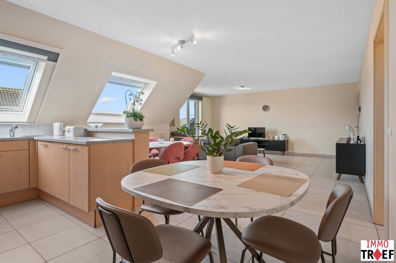 Dit ruim en lichtrijk appartement is gelegen op de bovenste verdieping van residentie Reynaert en is rustig maar centraal gelegen, op enkele stappen van openbaar vervoer, scholen en winkels. Indeling: een inkomhal, een zeer ruime en lichtrijke leefruimte met open keuken, een praktische bergruimte, een apart toilet, een badkamer die voorzien is van dubbele wastafel, ligbad én douche. Verder zijn er 2 volwaardige slaapkamers en is er bij dit appartement een garagebox inbegrepen. TROEVEN: een appartement waar je de hele dag geniet van een overvloed aan natuurlijk licht én uitzonderlijke privacy, zonder inkijk. bovendien is het energiezuinig (EPC B), beschikt over een conforme elektrische keuring en er is een garagebox inbegrepen in de vraagprijs. Het appartement is momenteel verhuurd aan de perfecte huurder en werd steeds uitstekend onderhouden. Kortom: ideaal voor wie rustig en comfortabel wil wonen, met alles binnen handbereik. Meer vragen, info of een bezoek? Contacteer Charlotte van IMMO TROEF: 052 52 52 00 – info@immotroef.be