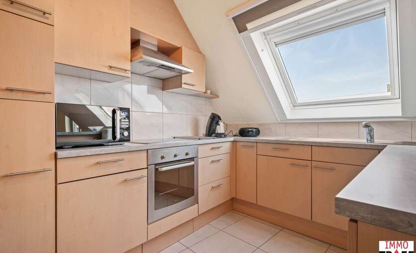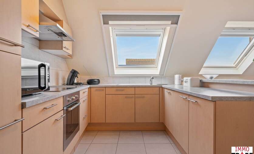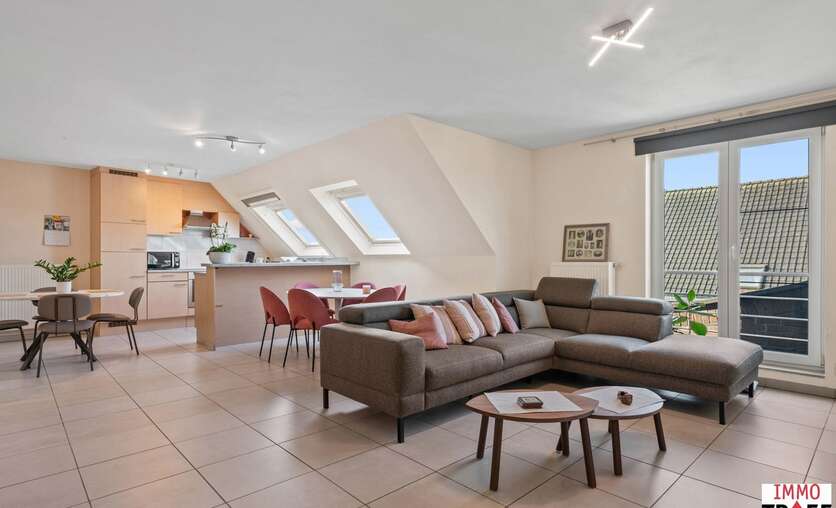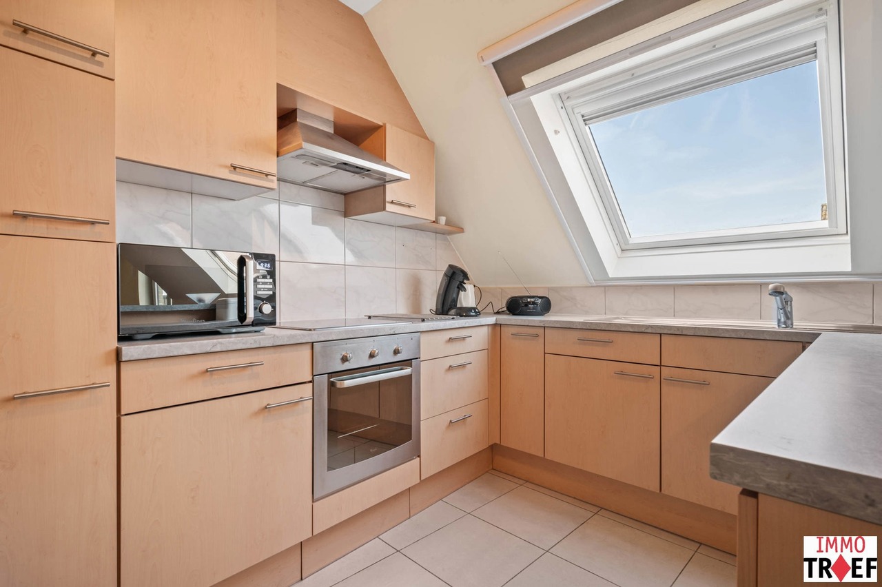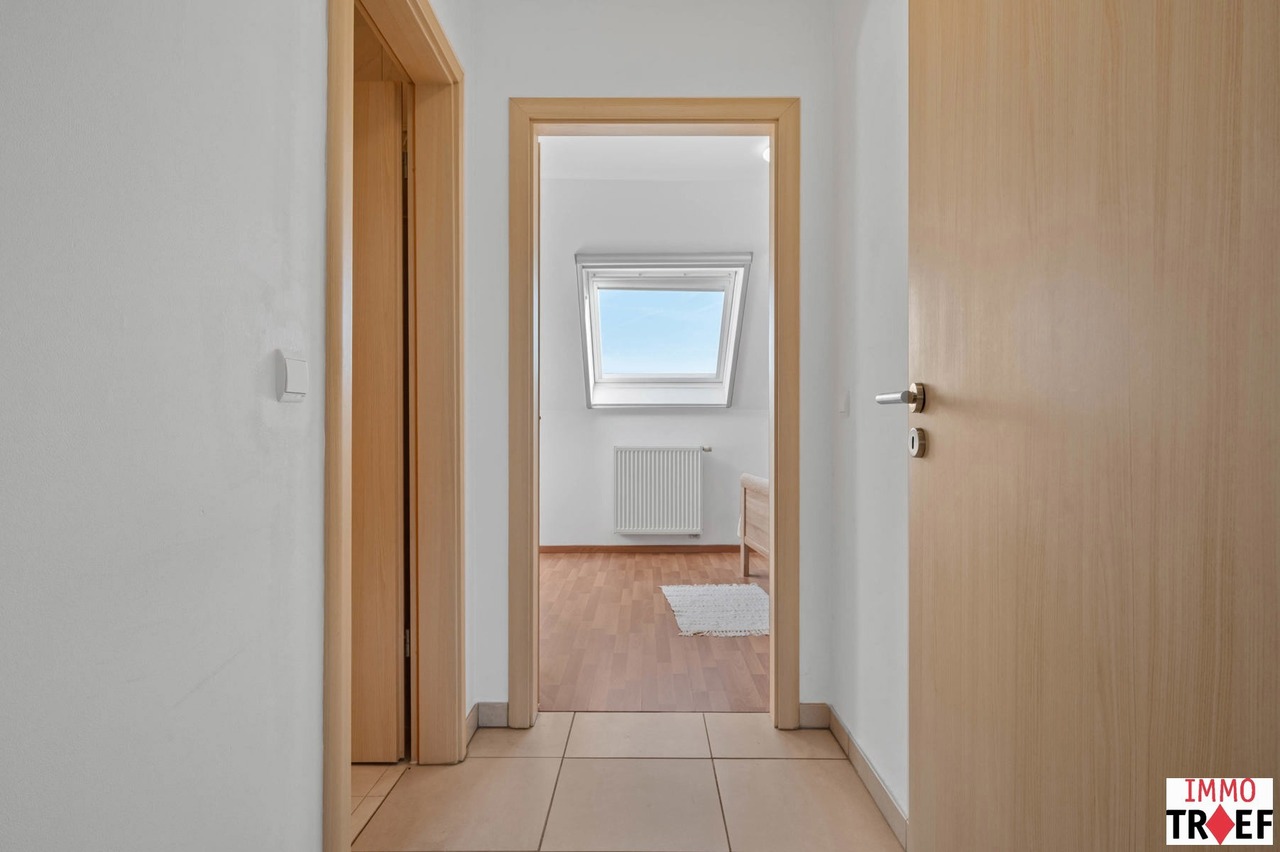 Dit ruim en lichtrijk appartement is gelegen op de bovenste verdieping van residentie Reynaert en is rustig maar centraal gelegen, op enkele stappen van openbaar vervoer, scholen en winkels. Indeling: een inkomhal, een zeer ruime en lichtrijke leefruimte met open keuken, een praktische bergruimte, een apart toilet, een badkamer die voorzien is van dubbele wastafel, ligbad én douche. Verder zijn er 2 volwaardige slaapkamers en is er bij dit appartement een garagebox inbegrepen. TROEVEN: een appartement waar je de hele dag geniet van een overvloed aan natuurlijk licht én uitzonderlijke privacy, zonder inkijk. bovendien is het energiezuinig (EPC B), beschikt over een conforme elektrische keuring en er is een garagebox inbegrepen in de vraagprijs. Het appartement is momenteel verhuurd aan de perfecte huurder en werd steeds uitstekend onderhouden. Kortom: ideaal voor wie rustig en comfortabel wil wonen, met alles binnen handbereik. Meer vragen, info of een bezoek? Contacteer Charlotte van IMMO TROEF: 052 52 52 00 – info@immotroef.be