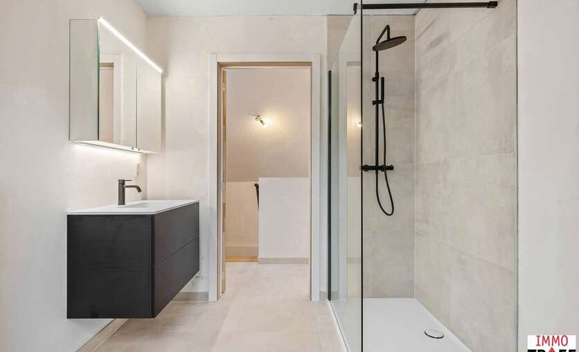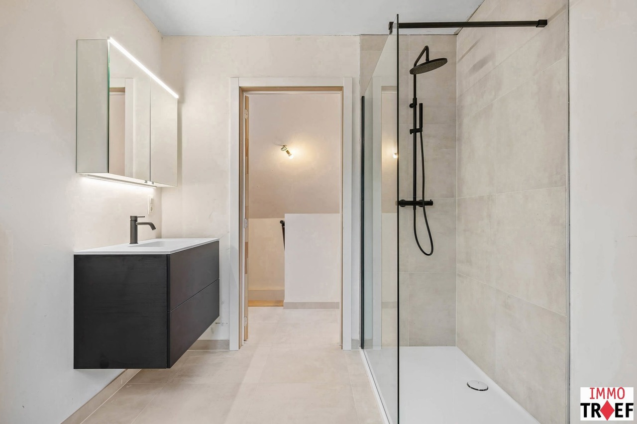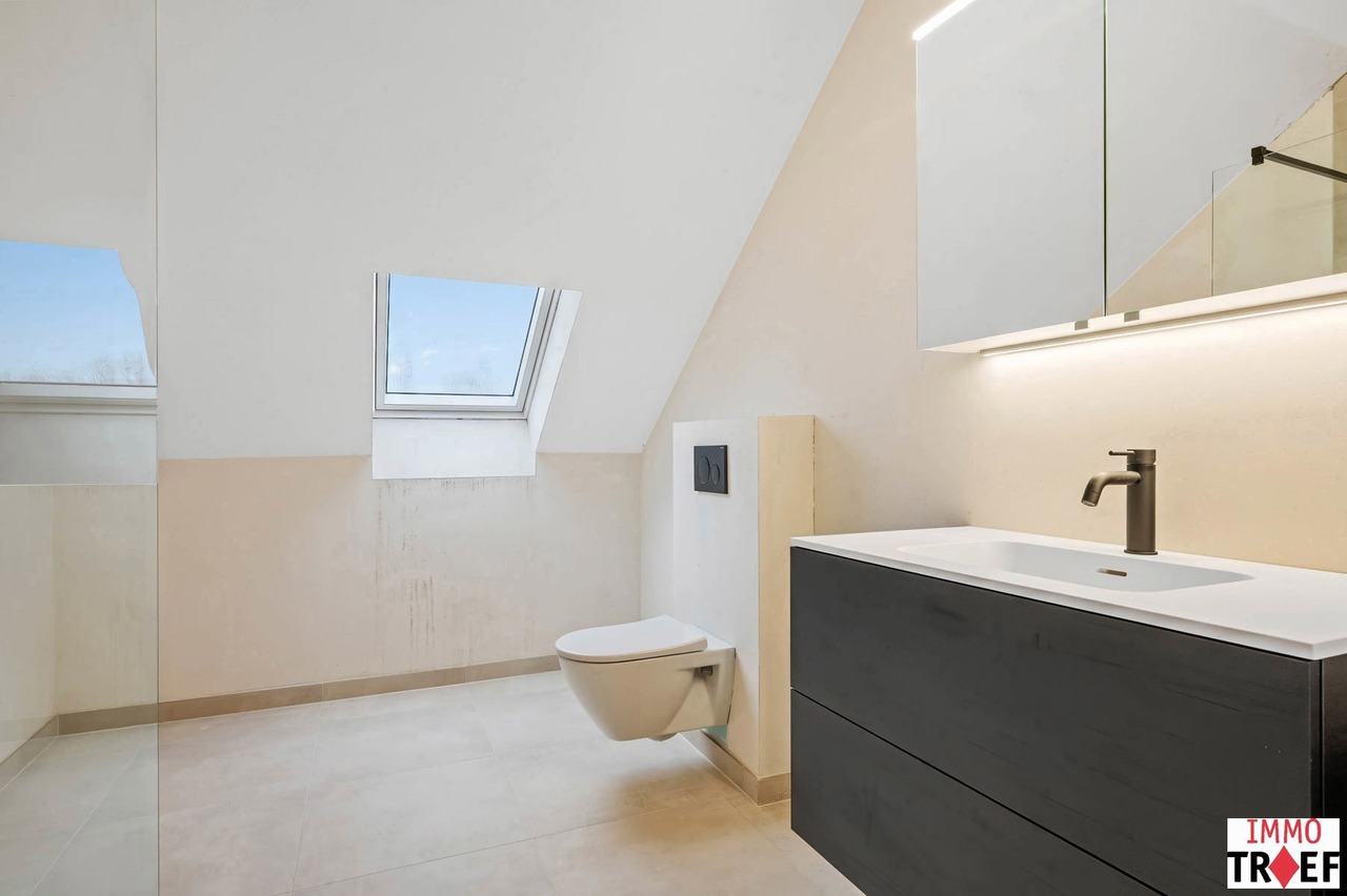 Dit prachtig duplex-appartement bevindt zich pal in het centrum van Lebbeke, op wandelafstand van werkelijk alles: scholen, winkels, openbaar vervoer, het cultureel centrum, de bibliotheek, muziekacademie, sporthal, zwembad… Een toplocatie voor iemand die alles dichtbij willen hebben. Dit appartement maakt deel uit van nieuwbouwresidentie The Corner House, een kleinschalige residentie met slechts 2 appartementen en bevindt zich op de 1ste & 2e verdieping. Indeling: een inkomhal met gastentoilet, een eerste slaapkamer met eigen badkamer die voorzien is van een inloopdouche, dubbele wastafel en een dressingruimte. Verder is er een lichtrijke leefruimte, een open keuken die voorzien is van alle comfort met aansluitend een praktische bergruimte. Vanuit de leefruimte is er toegang tot het overdekt terras waar het elk seizoen leuk vertoeven is. Op de verdieping zijn er 2 ruime slaapkamers, een badkamer met inloopdouche, wastafel en toilet, een technische ruimte en nog een ruimte die kan ingericht worden naar wens. Bovendien kan bij dit appartement een privatieve autostaanplaats worden aangekocht. TROEVEN: zéér energiezuinig appartement, dit appartement is voorzien van zonnepanelen met eigen omvormer, afgewerkt met hoogwaardige materialen, ventilatiesysteem D, superisolerende beglazing, op toplocatie gelegen in hartje Lebbeke. Vragen, meer info of een bezoek? Contacteer Charlotte van IMMO TROEF: 052 52 52 00 – info@immotroef.be
