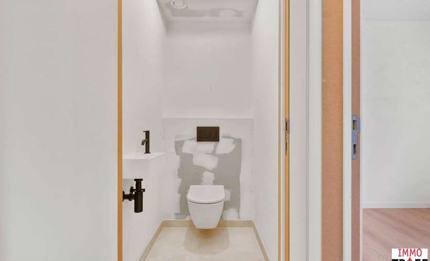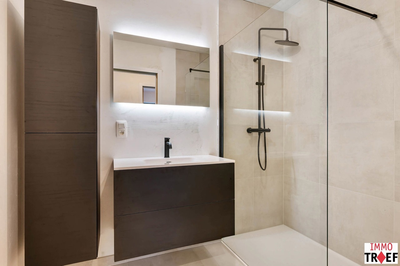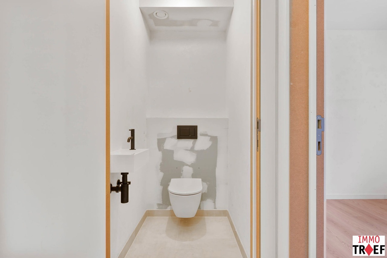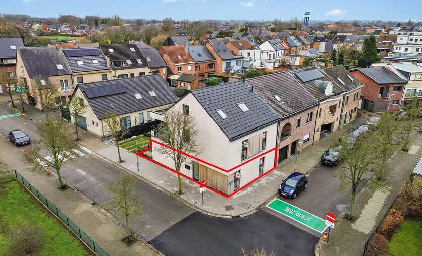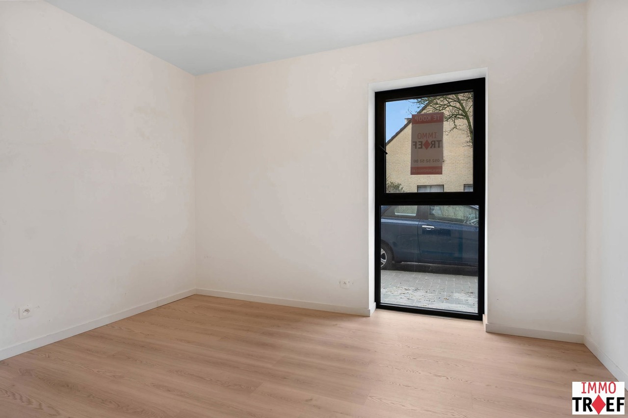 Dit mooi en lichtrijk nieuwbouwappartement bevindt zich pal in het centrum van Lebbeke, op wandelafstand van werkelijk alles: scholen, winkels, openbaar vervoer, het cultureel centrum, de bibliotheek, muziekacademie, sporthal, zwembad… Een toplocatie voor iemand die alles dichtbij willen hebben. Dit gelijkvloers appartement maakt deel uit van nieuwbouwresidentie The Corner House, een kleinschalige residentie met slechts 2 appartementen. Indeling: een ruime inkomhal met gastentoilet, twee ruime slaapkamers, een badkamer met inloopdouche en wastafel. Verder is er een lichtrijke leefruimte, een open keuken die voorzien is van alle comfort met aansluitend een praktische bergruimte. Vanuit de leefruimte is er toegang tot het zonnig terras en de tuin. Bij dit appartement is er plaats voorzien voor het stallen van een fiets en kan er een privatieve autostaanplaats worden aangekocht. TROEVEN: zéér energiezuinig appartement, afgewerkt met hoogwaardige materialen, ventilatiesysteem D, superisolerende beglazing, dit appartement is voorzien van zonnepanelen met eigen omvormer, op toplocatie gelegen in hartje Lebbeke. Vragen, meer info of een bezoek? Contacteer Charlotte van IMMO TROEF: 052 52 52 00 – info@immotroef.be
