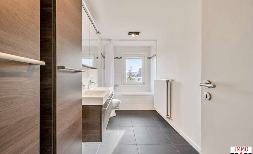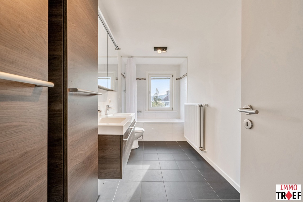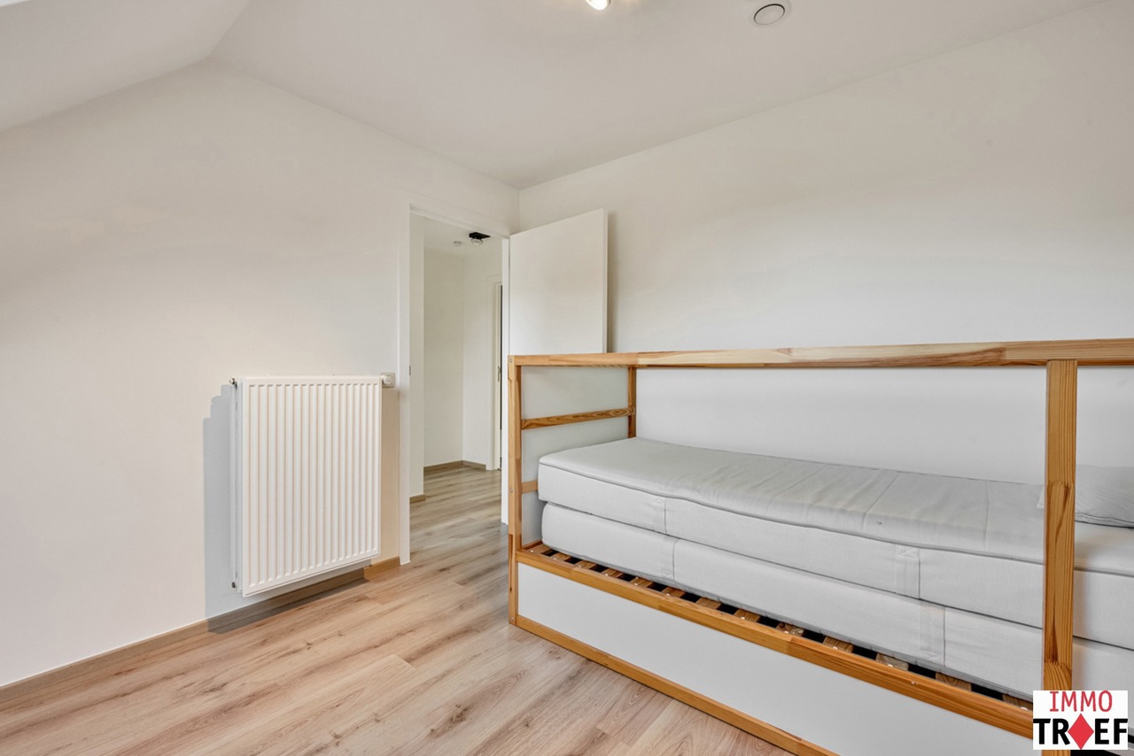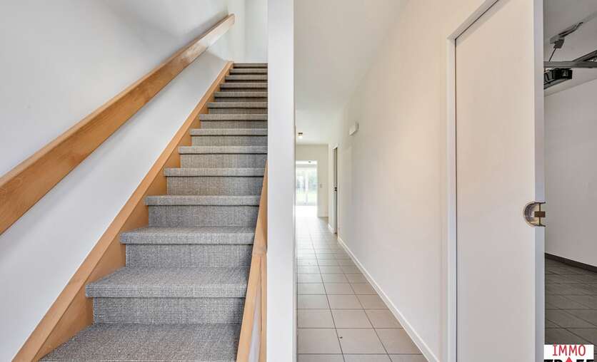 Deze aangename en praktische woning biedt alle comfort voor wie op zoek is naar ruimte, licht en een goede ligging. Indeling: een ruime inkomhal met aansluitend een garage, een wasplaats en een badkamer uitgerust met toilet, wastafel en douche. Verder is er een eerste slaapkamer met directe toegang tot de tuin. Daarnaast is er een handige opbergruimte, ideaal voor bijvoorbeeld een grasmachine of vuilnisopslag. Op de eerste verdieping bevindt zich een lichtrijke leefruimte met open keuken, perfect voor wie houdt van ruimte en gezelligheid. Vanuit de leefruimte heeft u toegang tot een aangenaam terras. Op de tweede verdieping is er een tweede badkamer met ligbad, dubbele wastafel en toilet en zijn er nog 2 slaapkamers aanwezig. TROEVEN: moderne woning met veel lichtinval, voldoende parkeermogelijkheden dankzij garage & oprit voor de woning. Deze woning is rustig gelegen in een vlot bereikbare buurt. Bezoek? Contacteer Charlotte van IMMO TROEF: info@immotroef.be