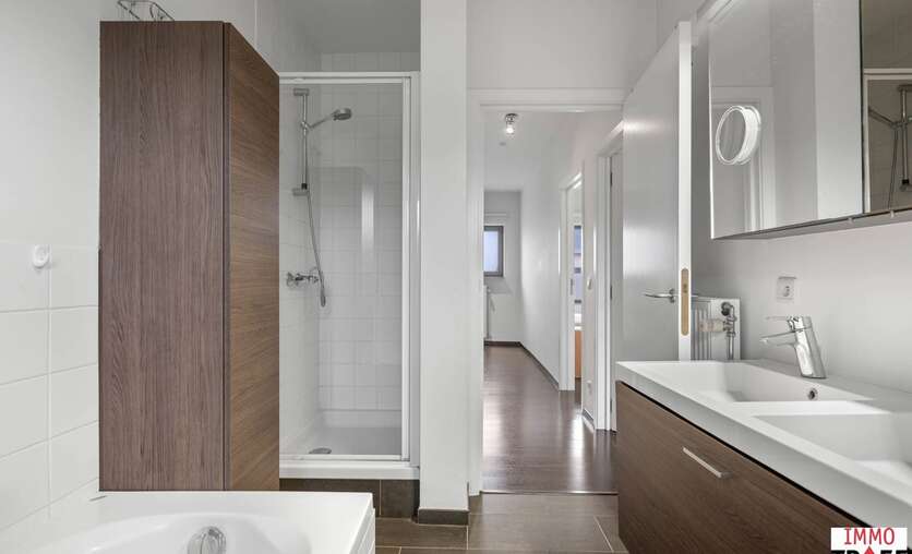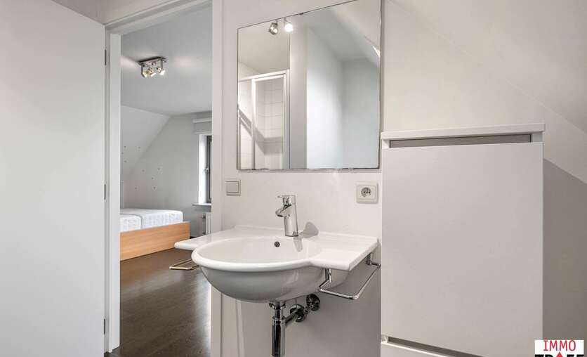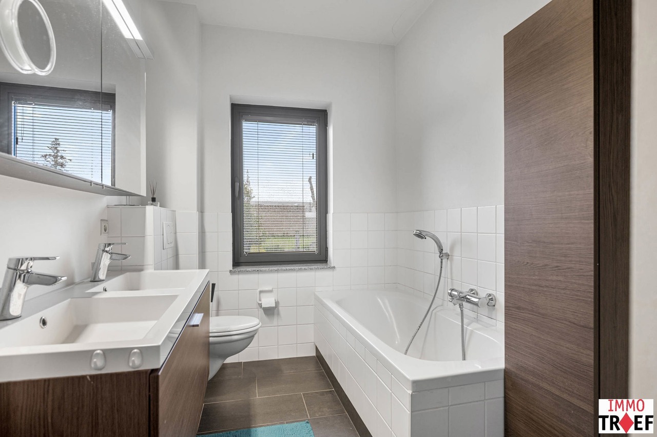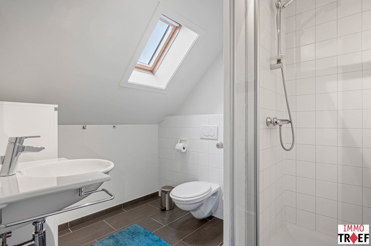 Deze aangename en praktische woning biedt alle comfort voor wie op zoek is naar ruimte, licht en een goede ligging. Indeling: een ruime inkomhal met aansluitend een gastentoilet en praktische kelder. Verder is er een lichtrijke leefruimte met een volledig geïnstalleerde keuken en een wasplaats. Buiten is er een gezellige tuin en ook een aparte garage. Op de eerste verdieping is er een nachthal, een badkamer met dubbele wastafel, toilet, douche & ligbad en 2 ruime slaapkamers. Op de tweede verdieping is er een derde slaapkamer met eigen wastafel, douche & toilet. TROEVEN: moderne woning met veel lichtinval, voldoende parkeermogelijkheden dankzij garage & oprit. Deze woning is rustig gelegen in een vlot bereikbare buurt. Info of een bezoek? Contacteer Charlotte van IMMO TROEF: info@immotroef.be
