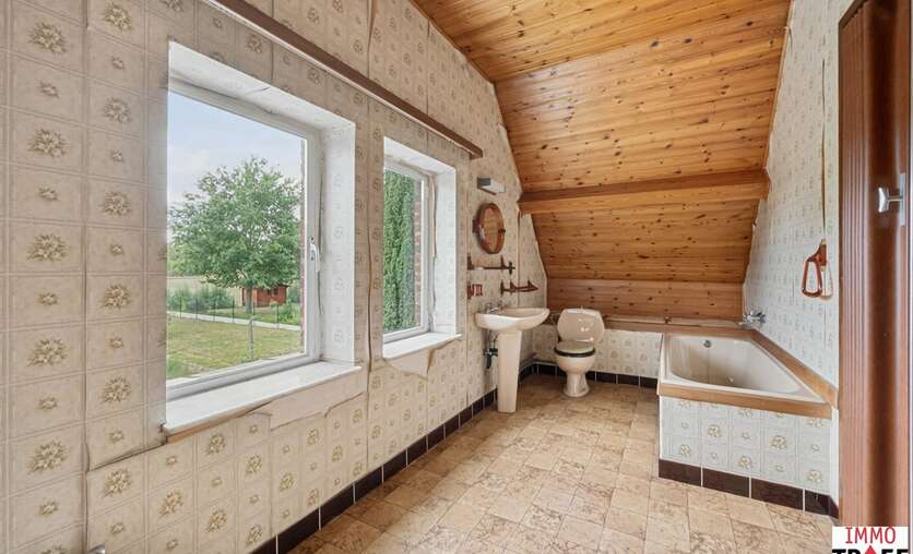 Deze ruime gezinswoning is gelegen op een perceel van 21a15(!) waar u geniet van een onverstoord uitzicht op het omliggende groen in het landelijke Herdersem en heeft een vlotte bereikbaarheid richting Aalst, Wieze, Dendermonde en omgeving. Grote troef van deze woning is een ruime atelier-/garage-/magazijnruimte, met een uitzonderlijke combinatie van rust, groen uitzicht en talloze mogelijkheden voor wie op zoek is naar een woon-werkcombinatie of véél ruimte. De woning vormt de perfecte basis om een unieke thuis te creëren dankzij de solide structuur, grote volumes en gunstige indeling. Kortom een unieke kans! TROEVEN: woning met atelier/garage/magazijn, uniek, weids uitzicht op groen, rustige, landelijke ligging, grote ruimtes: in totaal een bruto vloeroppervlakte van 407m²(!), tal van mogelijkheden, ideaal voor wie wonen en werken wil combineren. Mits grondige renovatie is van deze eigendom een unieke parel te maken. Meer vragen, info of een bezoek? Contacteer Charlotte van IMMO TROEF: 052 52 52 00 – info@immotroef.be