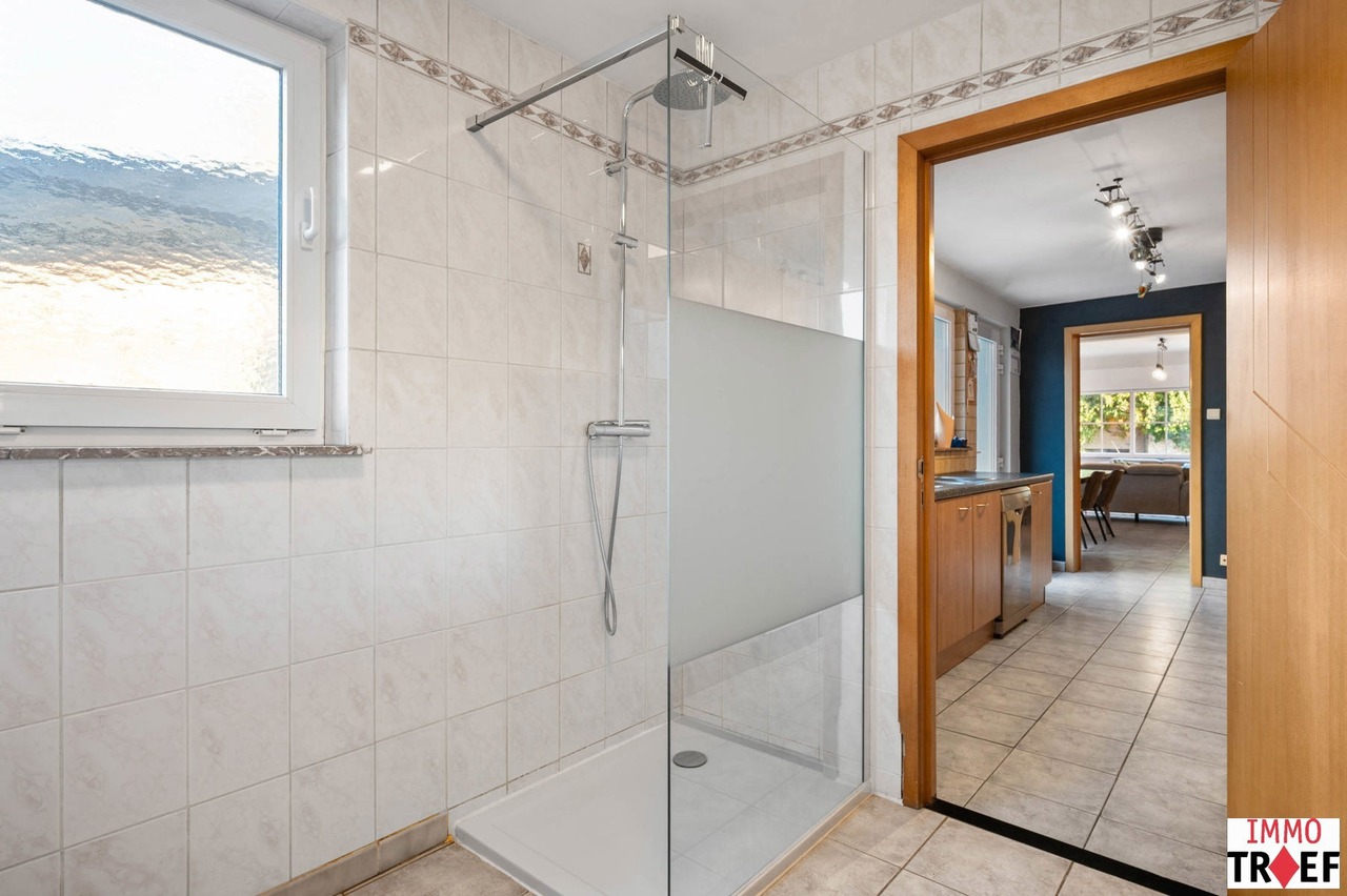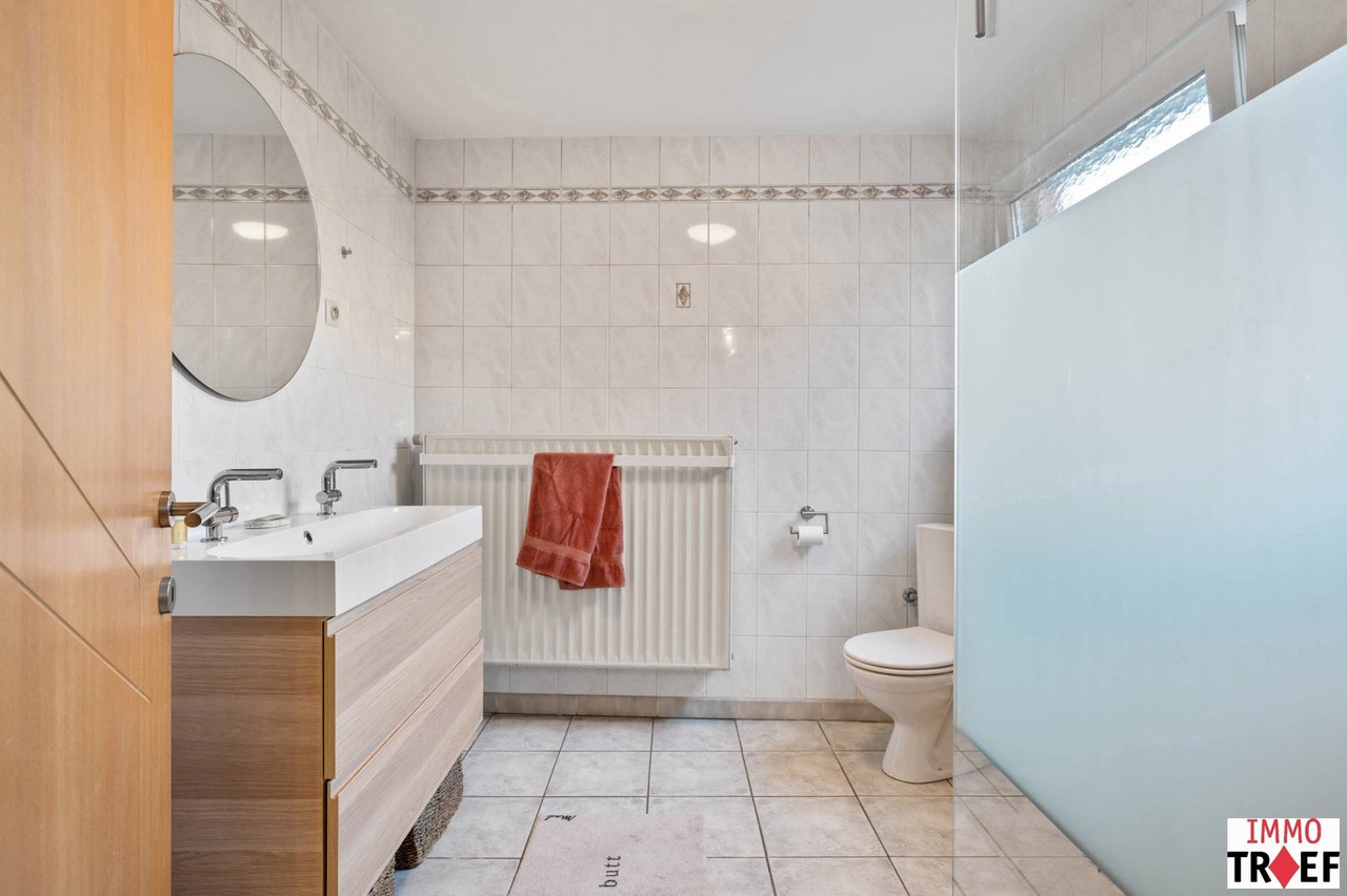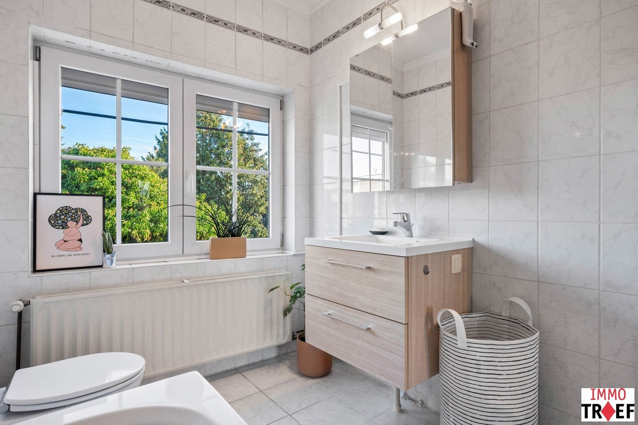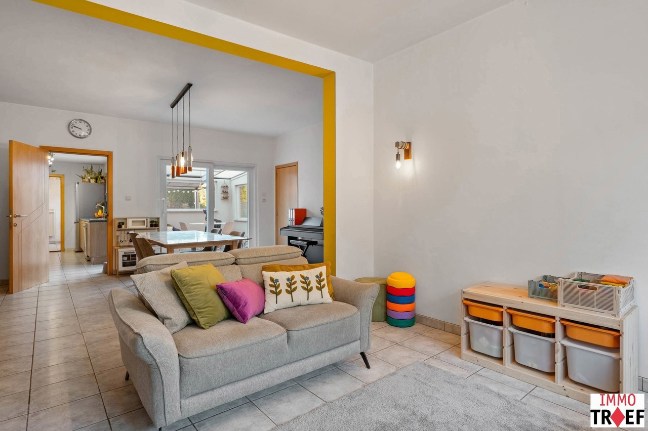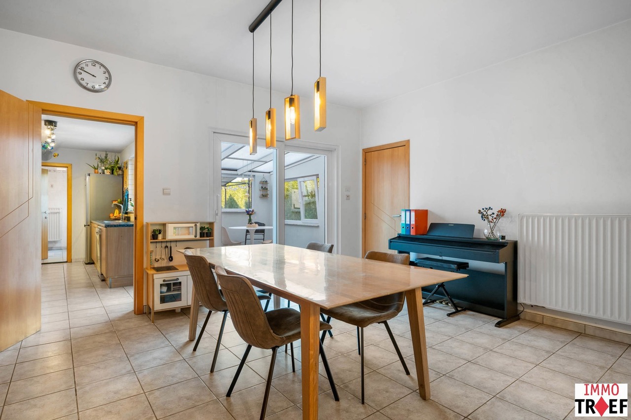 Deze instapklare woning is gelegen in de rustige en aangename straat in Moorsel bij Aalst, een charmant dorp met een landelijk karakter. De omgeving wordt gekenmerkt door weinig verkeer, wat zorgt voor een veilige en ontspannen woonomgeving, vlakbij wandel- en fietsmogelijkheden door het groene landschap, ideaal voor wie houdt van rust en natuur. Tegelijk zijn alle dagelijkse voorzieningen vlot bereikbaar: winkels, scholen en openbaar vervoer bevinden zich op korte afstand. Indeling: een inkomhal, een ruime & lichtrijke leefruimte, een geïnstalleerde keuken, een eerste badkamer met toilet, dubbele wastafel en inloopdouche. Vanuit de keuken heb je toegang tot een lichtrijke veranda. Buiten is er een aangelegd terras, een praktische opbergruimte, en de zonnige tuin. Tot slot is er een ruime garage met oa aansluiting voor wasmachine. Op de eerste verdieping is er een nachthal, zijn er 3 volwaardige slaapkamers en een tweede badkamer met ligbad, wastafel en toilet. De tweede verdieping is bereikbaar met vaste trap waar zich nog een zeer ruime slaapkamer bevindt. TROEVEN: perfect instapklare woning, EPC C, zonnepanelen aanwezig, elektriciteit conform, 4 volwaardige slaapkamers, garage & tuin aanwezig. Meer info, vragen of een bezoek? Contacteer Charlotte van IMMO TROEF: 052 52 52 00 – info@immotroef.be