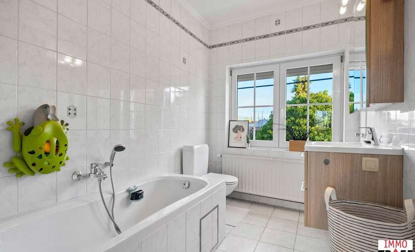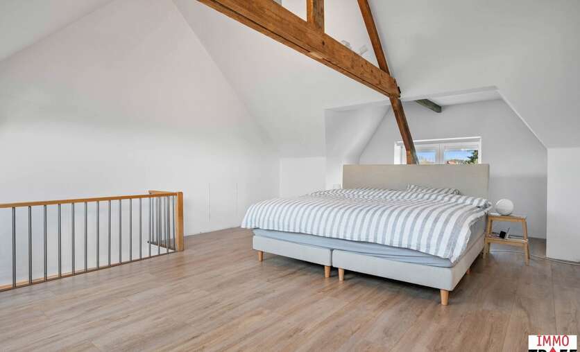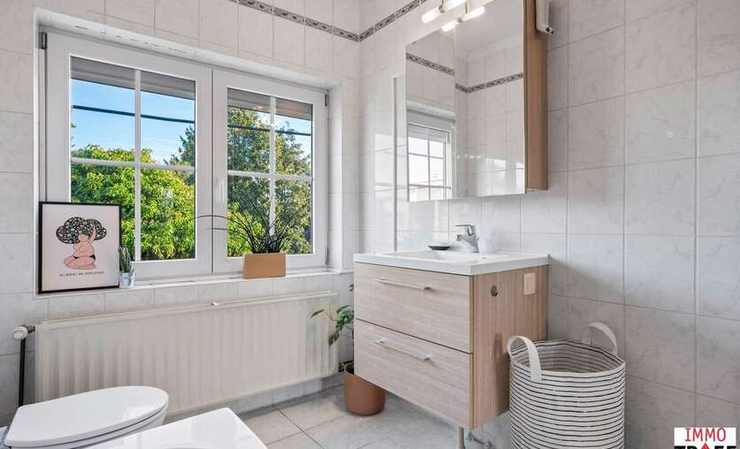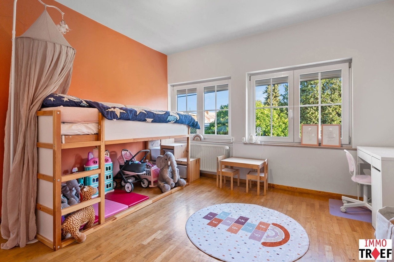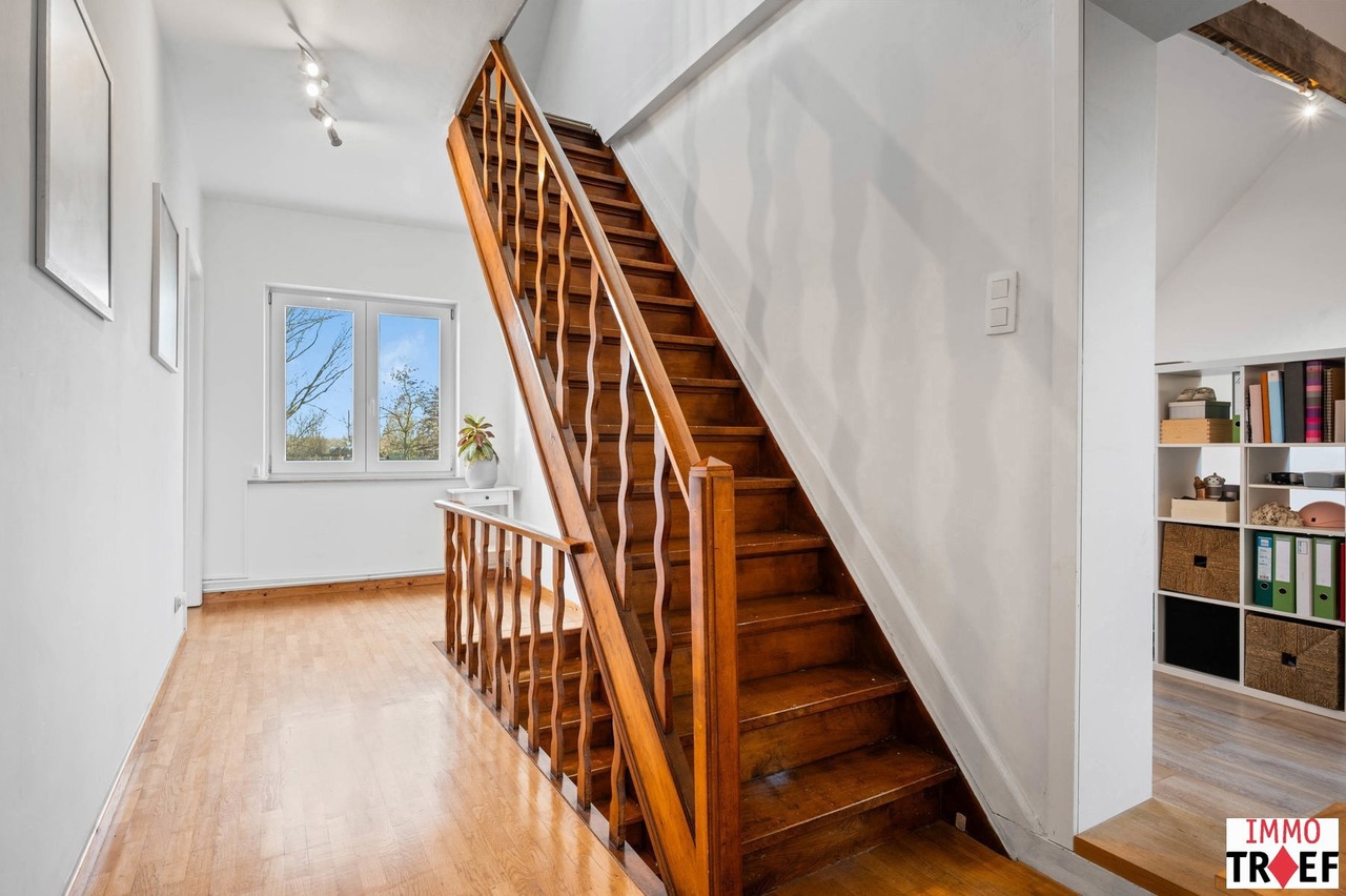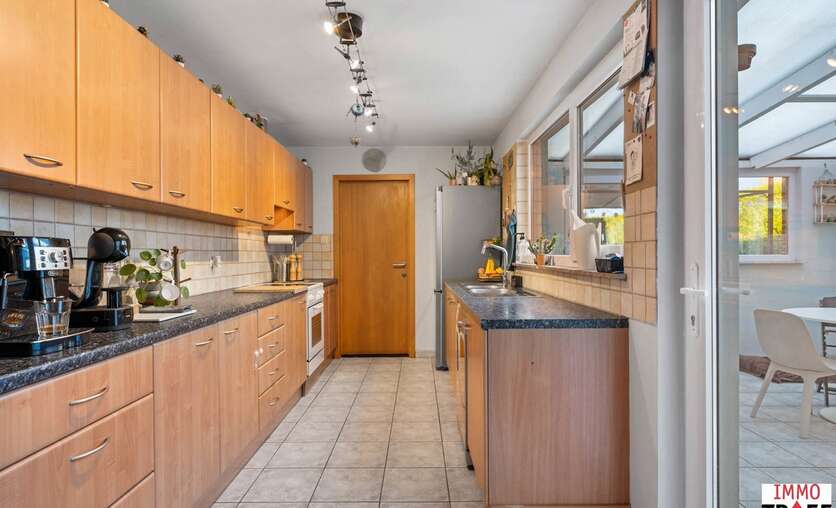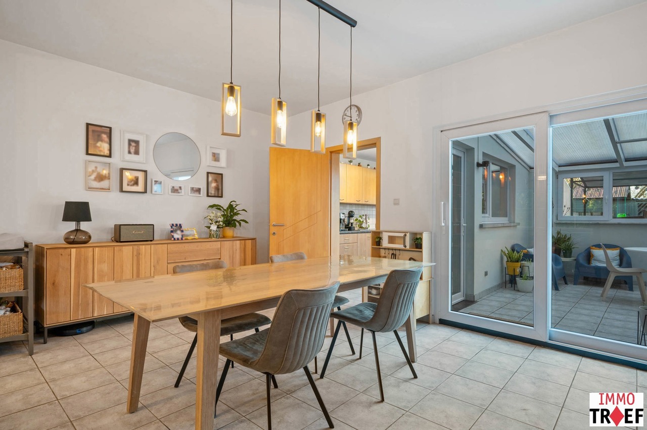 Deze instapklare woning is gelegen in de rustige en aangename straat in Moorsel bij Aalst, een charmant dorp met een landelijk karakter. De omgeving wordt gekenmerkt door weinig verkeer, wat zorgt voor een veilige en ontspannen woonomgeving, vlakbij wandel- en fietsmogelijkheden door het groene landschap, ideaal voor wie houdt van rust en natuur. Tegelijk zijn alle dagelijkse voorzieningen vlot bereikbaar: winkels, scholen en openbaar vervoer bevinden zich op korte afstand. Indeling: een inkomhal, een ruime & lichtrijke leefruimte, een geïnstalleerde keuken, een eerste badkamer met toilet, dubbele wastafel en inloopdouche. Vanuit de keuken heb je toegang tot een lichtrijke veranda. Buiten is er een aangelegd terras, een praktische opbergruimte, en de zonnige tuin. Tot slot is er een ruime garage met oa aansluiting voor wasmachine. Op de eerste verdieping is er een nachthal, zijn er 3 volwaardige slaapkamers en een tweede badkamer met ligbad, wastafel en toilet. De tweede verdieping is bereikbaar met vaste trap waar zich nog een zeer ruime slaapkamer bevindt. TROEVEN: perfect instapklare woning, EPC C, zonnepanelen aanwezig, elektriciteit conform, 4 volwaardige slaapkamers, garage & tuin aanwezig. Meer info, vragen of een bezoek? Contacteer Charlotte van IMMO TROEF: 052 52 52 00 – info@immotroef.be